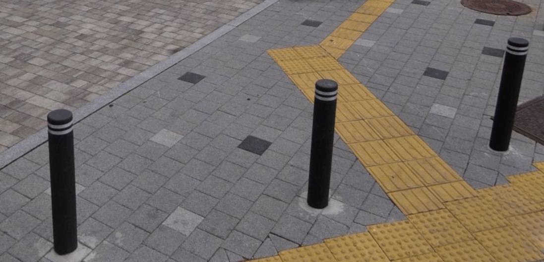 주변에서 자주 보는 석재, 스테인리스 등 충격을 흡수하지 못하는 부적합한 재질의 볼라드는 불법시설물이며, 설치되는 볼라드 30㎝ 앞에는 시각장애인이 인식할 수 있도록 점자형 블록을 설치하여야 합니다.